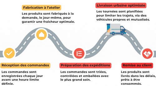 Derrière chaque livraison, il y a une organisation précise, pensée pour garantir la fraîcheur des produits, le respect des délais et une empreinte environnementale réduite.